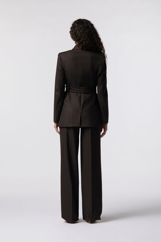 Tailleur Giacca con cintura e Pantalone palazzo – Gessato