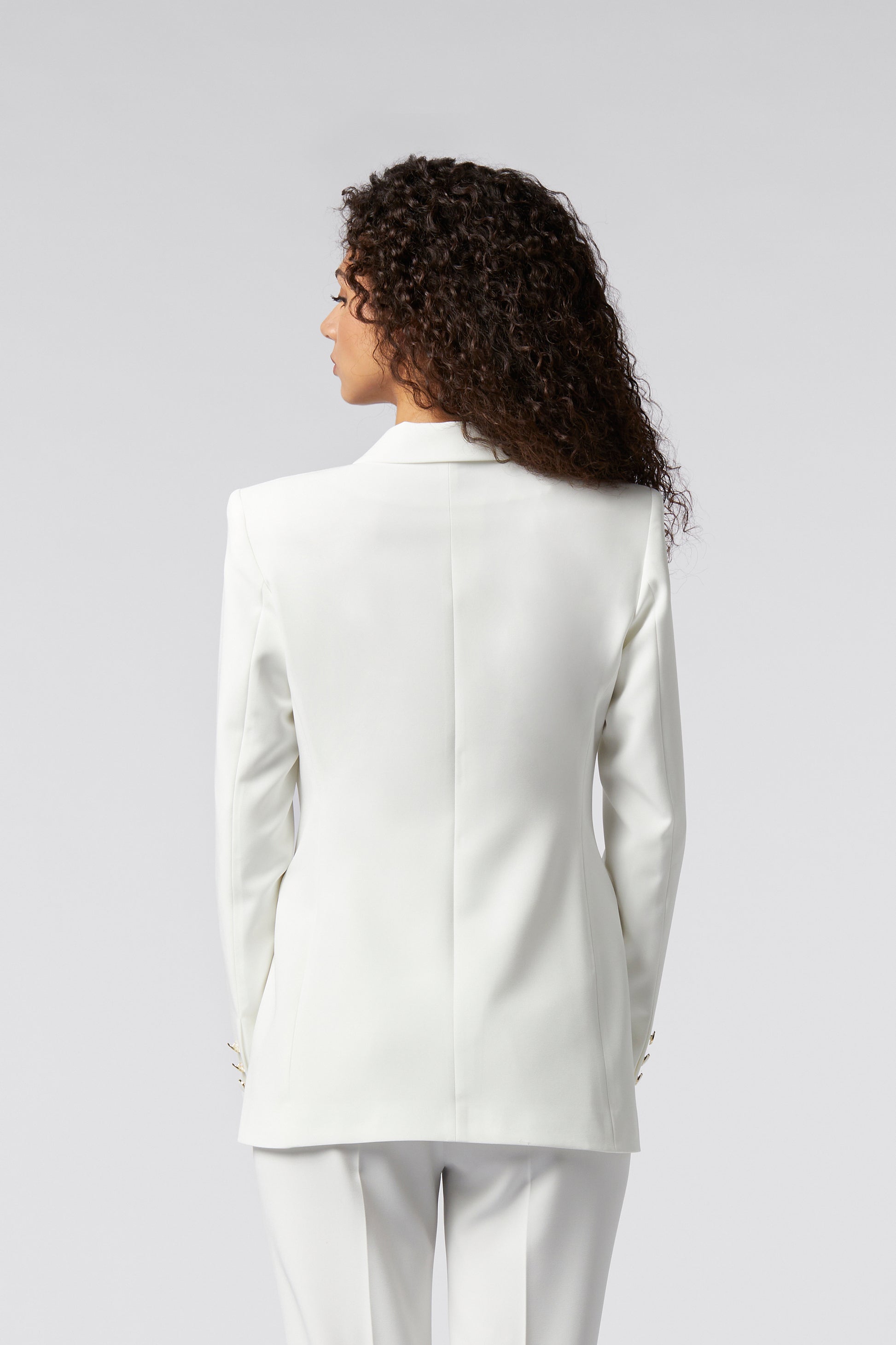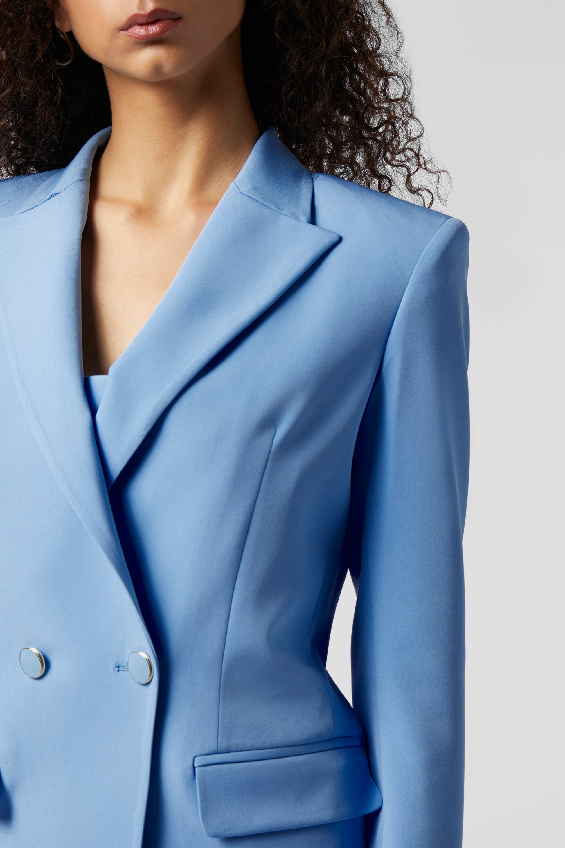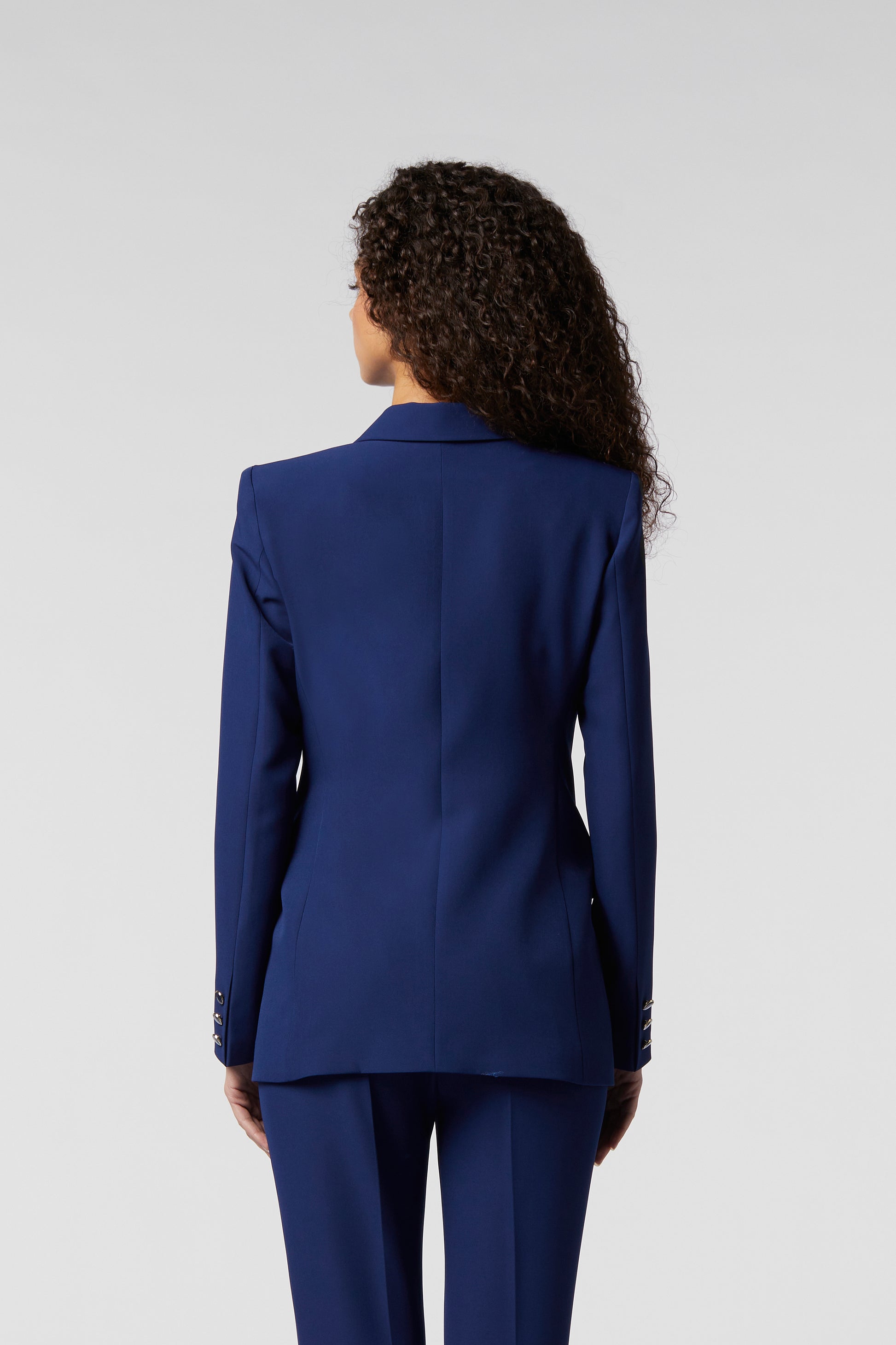 Greta è la giacca perfetta per comporre un tailleur elegante e raffinato, pensato per accompagnarti alla laurea o nei tuoi eventi più formali. Realizzata in tessuto tecnico, ha una linea sfiancata che valorizza la silhouette e rever in raso che donano un tocco luminoso al look.