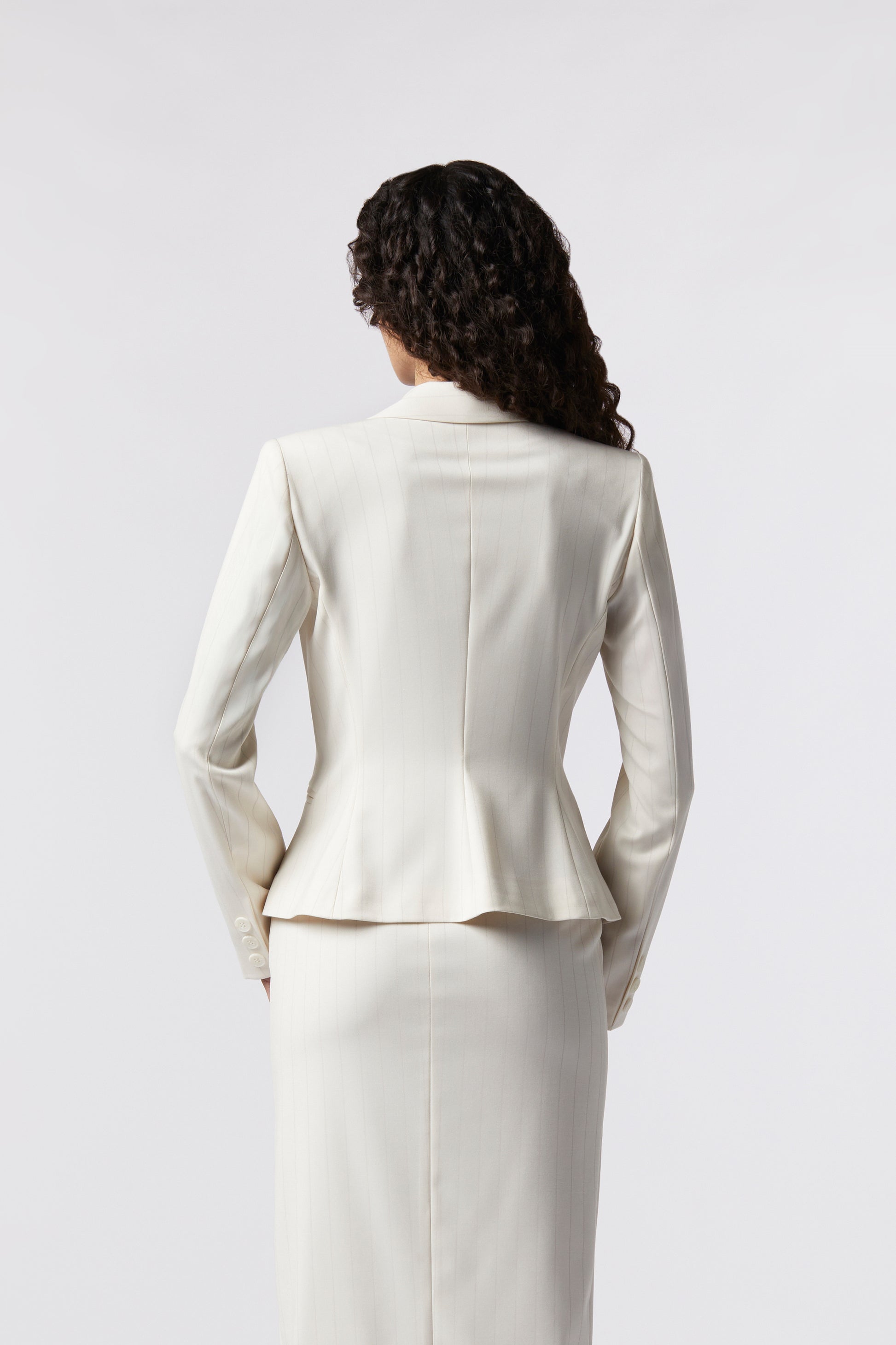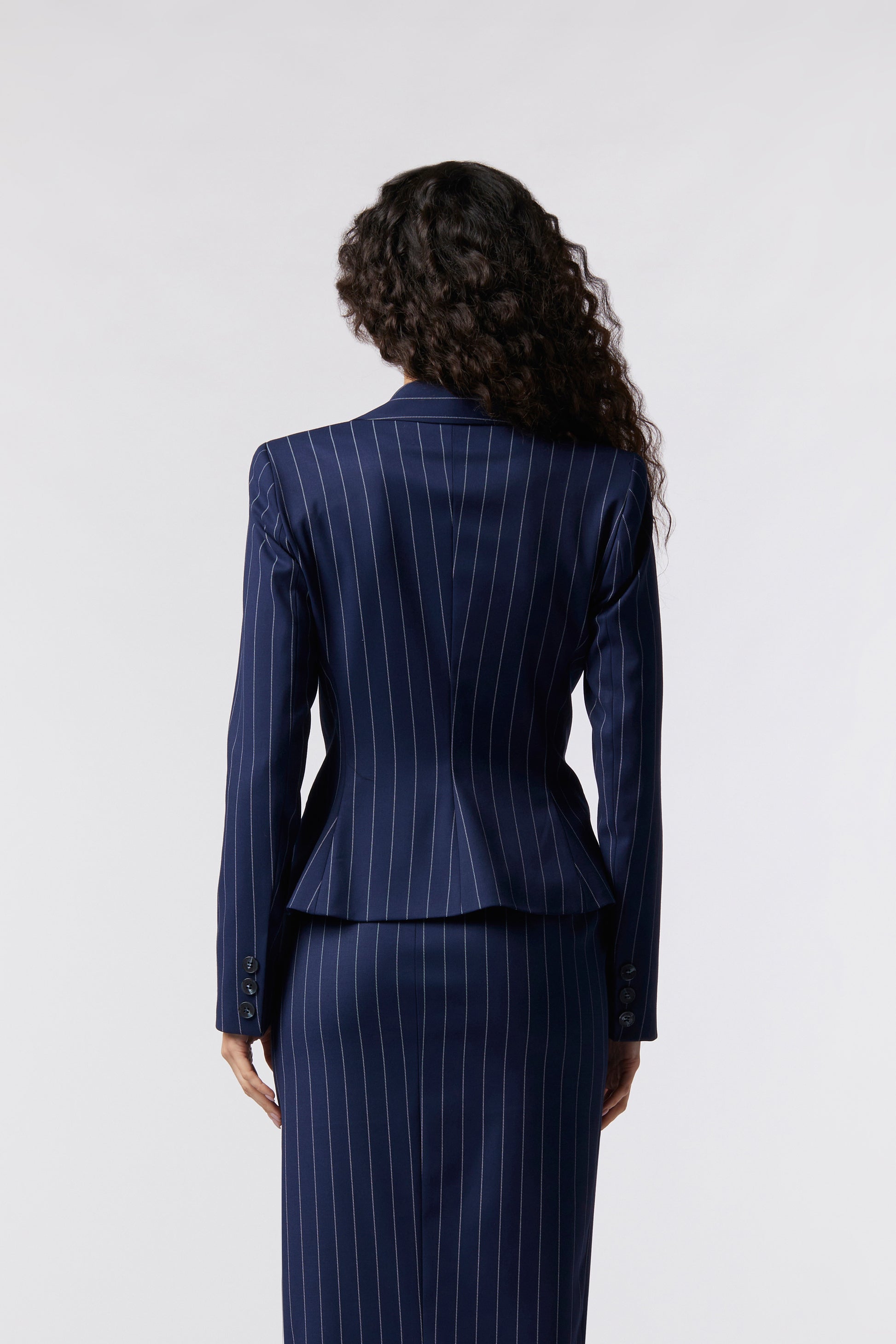 Goito è la giacca monopetto in gessato che unisce eleganza e versatilità in un design essenziale. Realizzata in tessuto gessato fine, segue con armonia le linee del corpo offrendo comfort e struttura. Il singolo bottone tono su tono aggiunge equilibrio e raffinatezza al capo. Perfetta per creare un tailleur Made in Italy dal carattere moderno, ideale come completo per la laurea, il lavoro o un’occasione speciale.