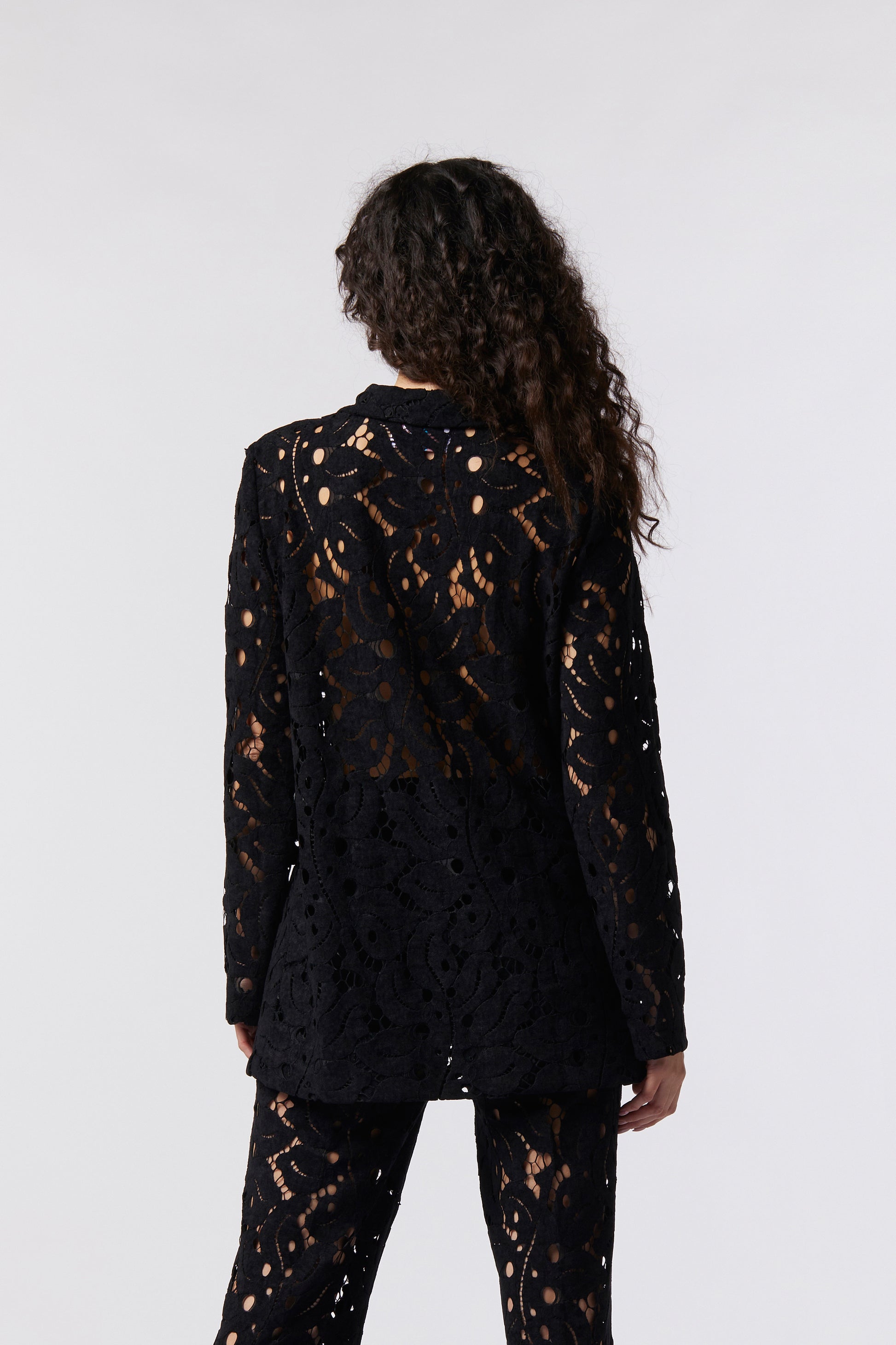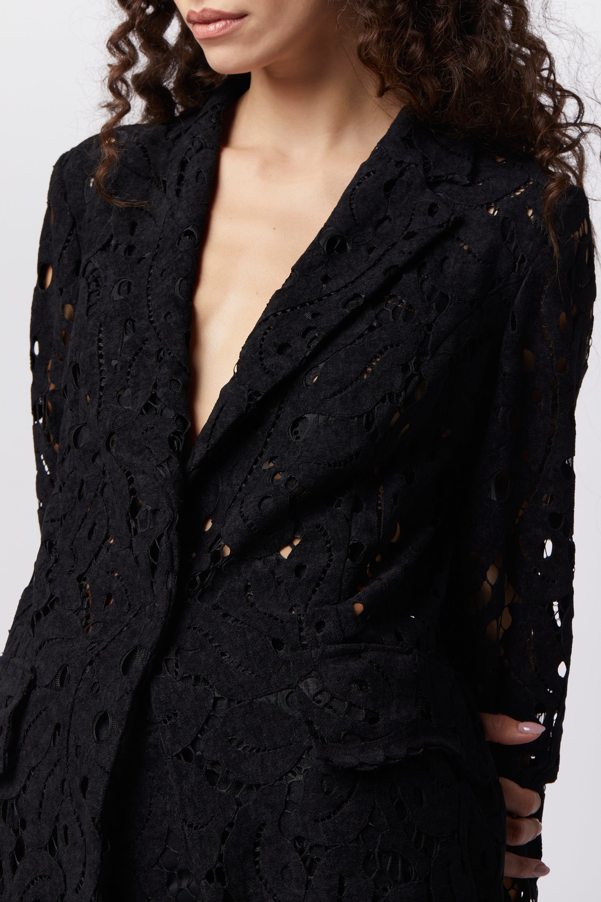 Ghedi è la giacca monopetto in pizzo che racchiude femminilità e carattere in un solo capo. Realizzata in pizzo sfoderato, gioca con trasparenze delicate e texture raffinate che esaltano la silhouette con eleganza. La linea essenziale e il design leggero rendono questo modello perfetto per creare un tailleur Made in Italy sofisticato e contemporaneo, ideale come completo per la laurea, una cerimonia o un evento serale di stile impeccabile.
