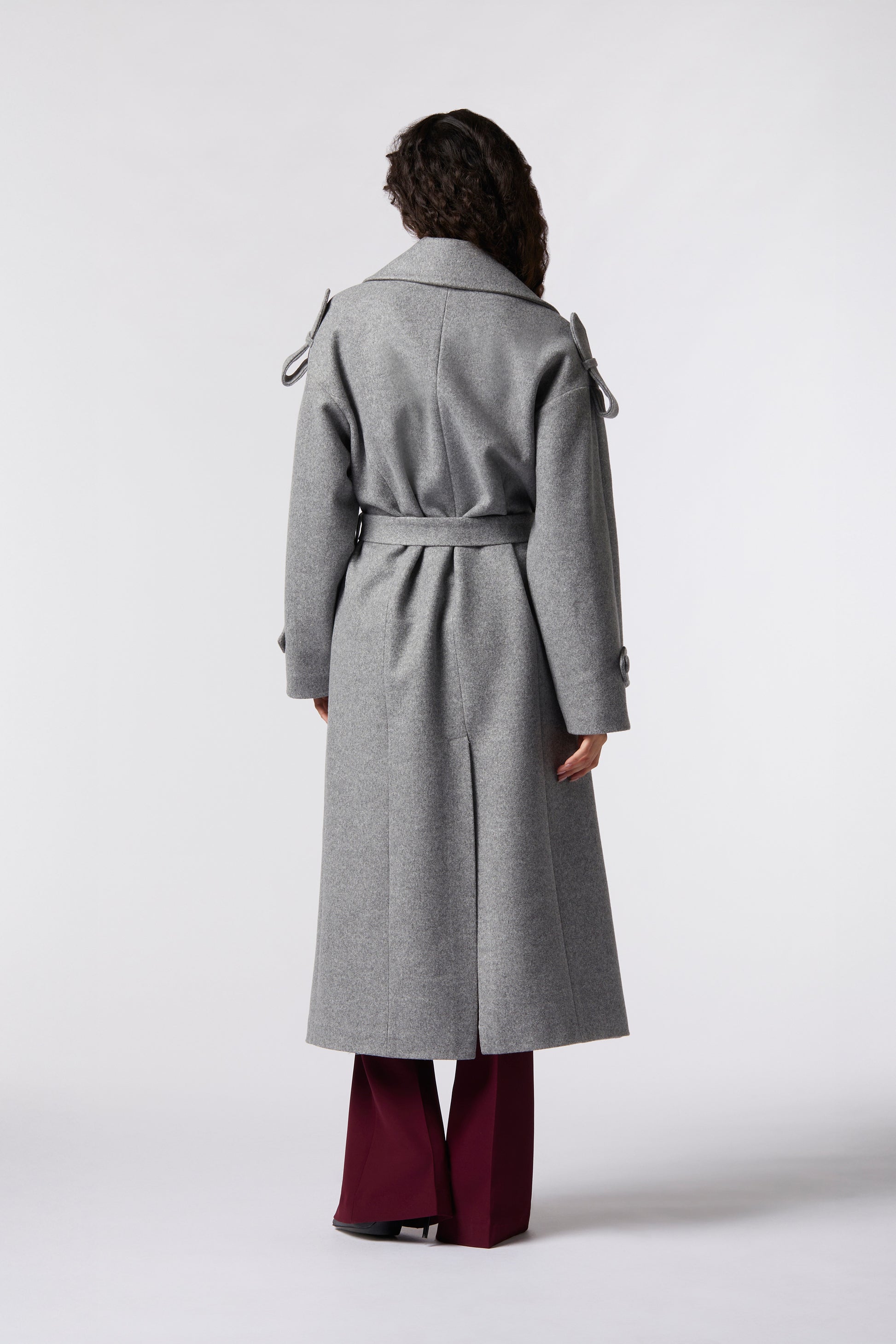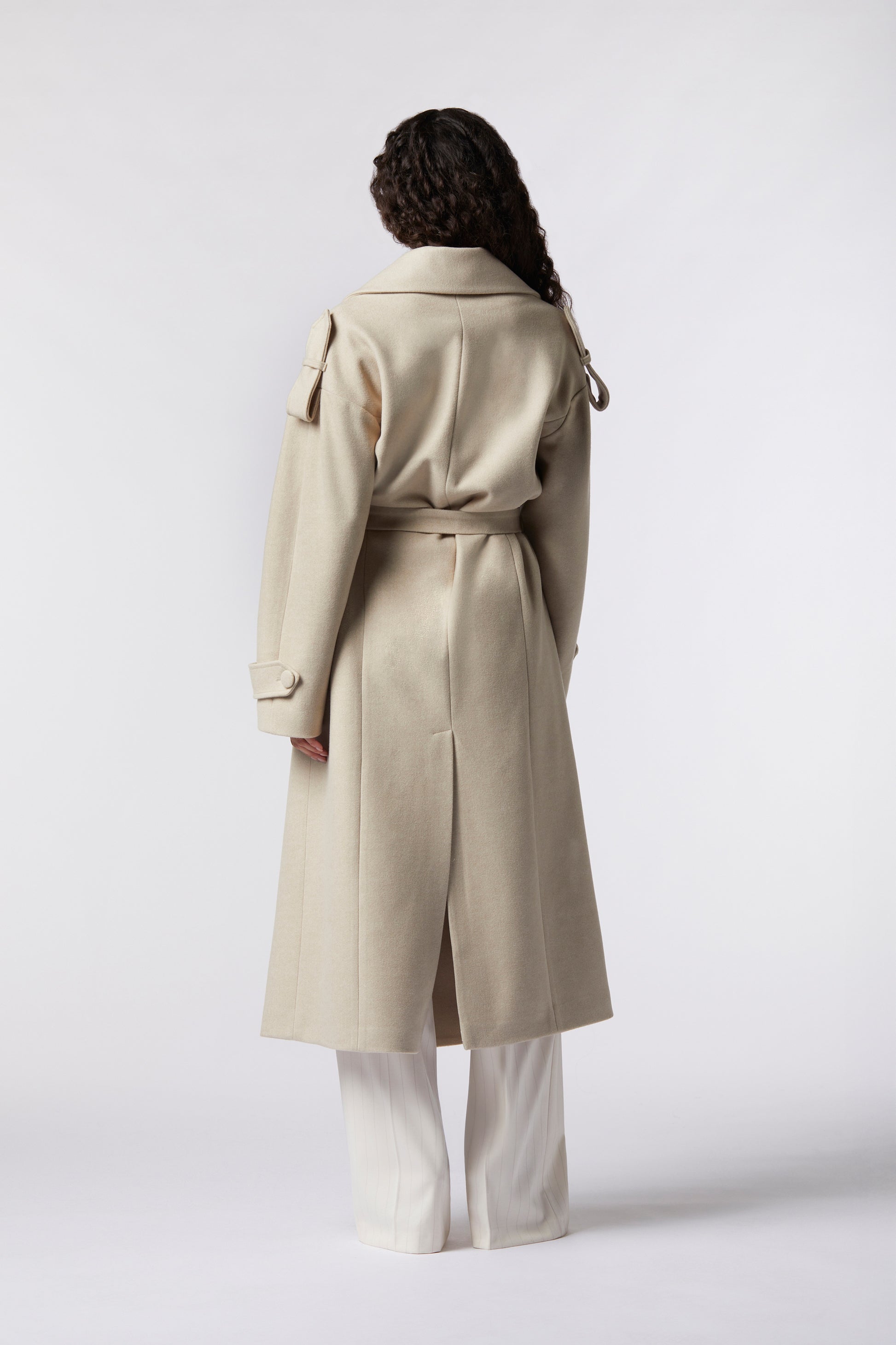 Calcutta è il cappotto doppiopetto in misto lana che coniuga eleganza classica e comfort contemporaneo. La cintura in vita valorizza la silhouette con equilibrio, mentre gli ampi rever e la chiusura doppiopetto con bottoni tono su tono donano un aspetto raffinato e deciso. Le tasche con patta completano il capo con un dettaglio sartoriale. Morbido, caldo e versatile, è un cappotto Made in Italy perfetto per la città o le occasioni speciali della stagione.