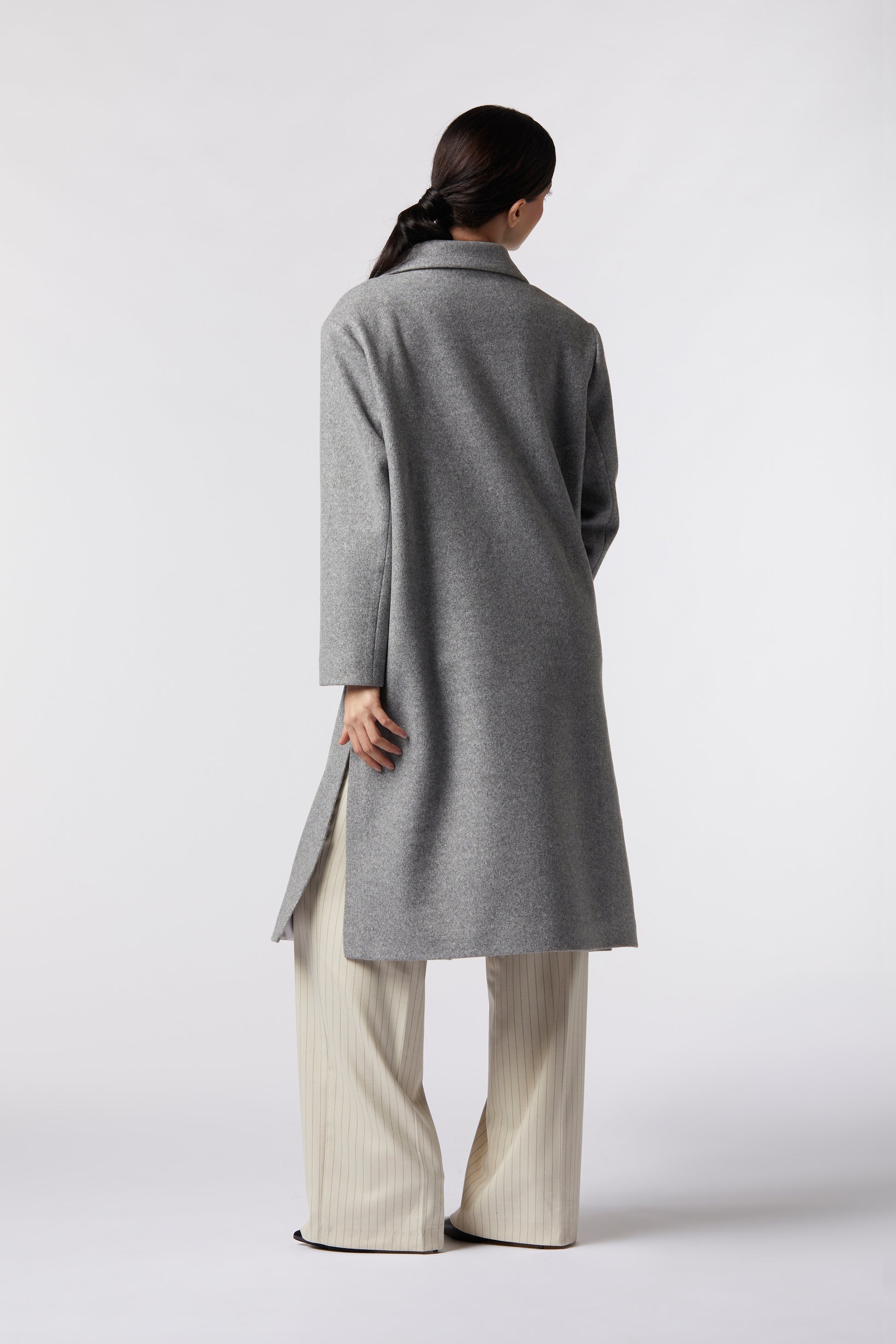 Questo cappotto doppiopetto in misto lana è pensato per un’eleganza contemporanea e disinvolta. Realizzato con una linea diritta e spacchi laterali che ne esaltano la vestibilità, presenta una chiusura a due bottoni e tasche a toppa in tessuto che aggiungono un tocco distintivo al design. Caldo, morbido e versatile, è un capo Made in Italy perfetto per accompagnare la stagione con stile, ideale sia con un tailleur sia su look quotidiani più casual.