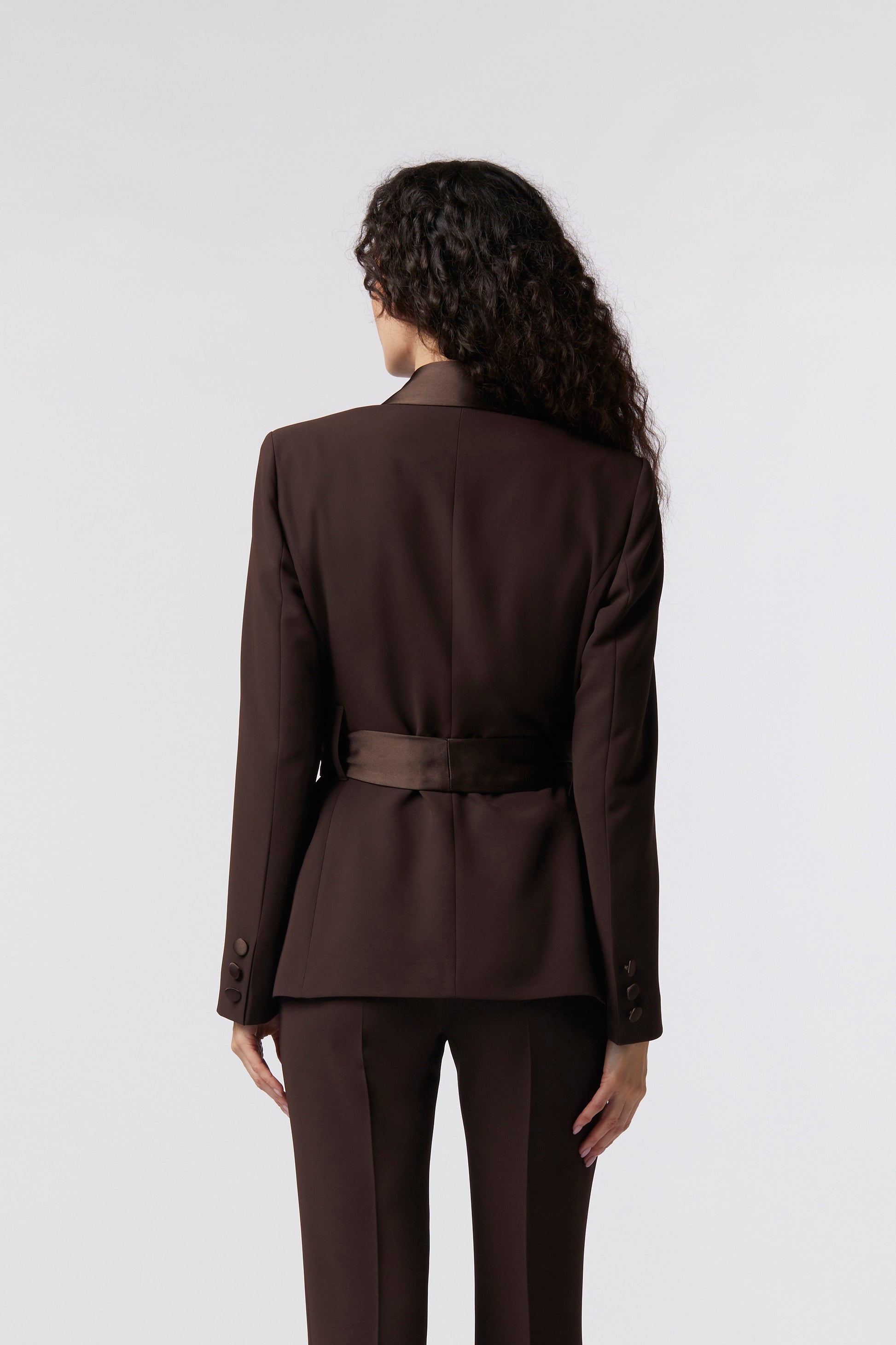 Giulianova è la giacca in Tessuto Kady che unisce eleganza e carattere in un design raffinato. Il rever e la cintura in raso tono su tono donano luminosità e definizione alla silhouette, mentre la linea strutturata del tessuto valorizza la figura con equilibrio e femminilità. Ideale per creare un tailleur Made in Italy dal fascino contemporaneo, perfetto come completo per la laurea, la cerimonia o gli eventi più speciali.