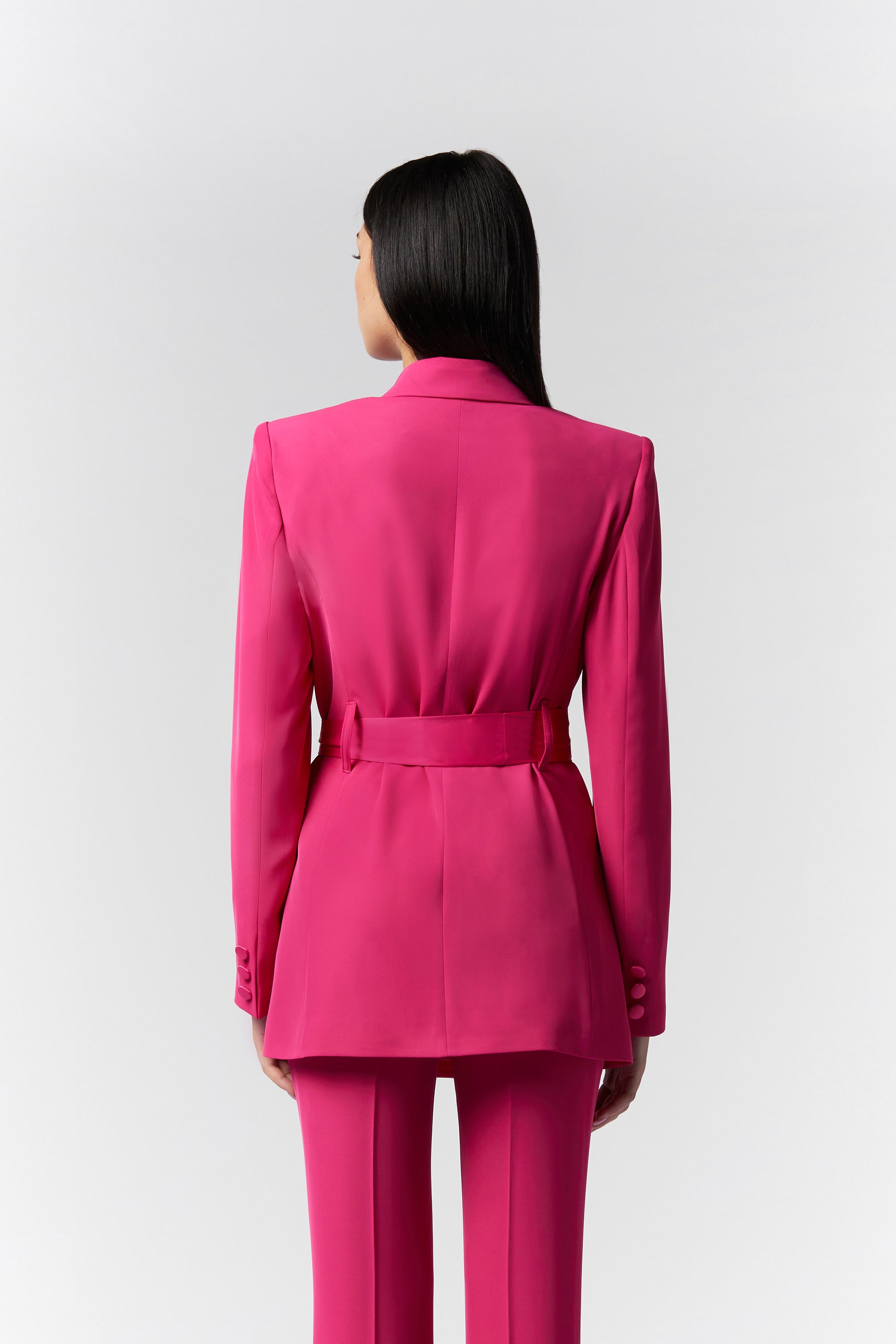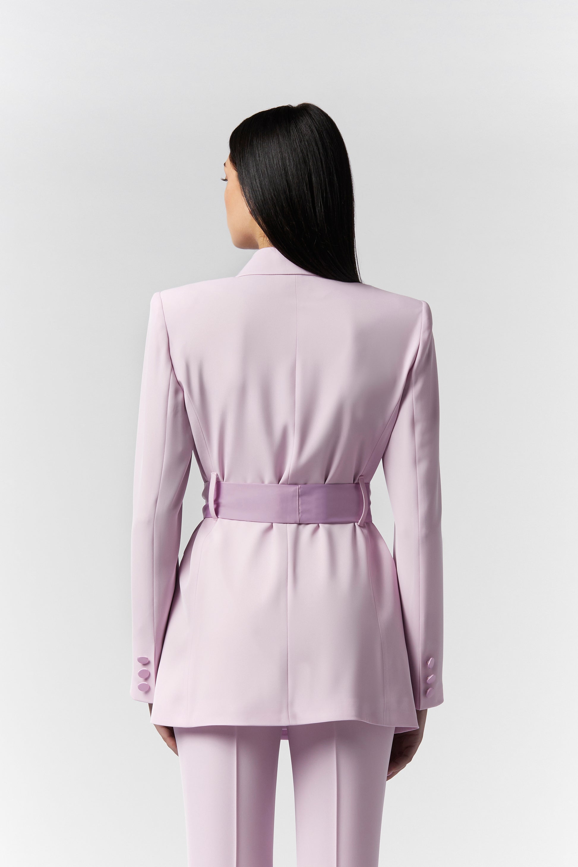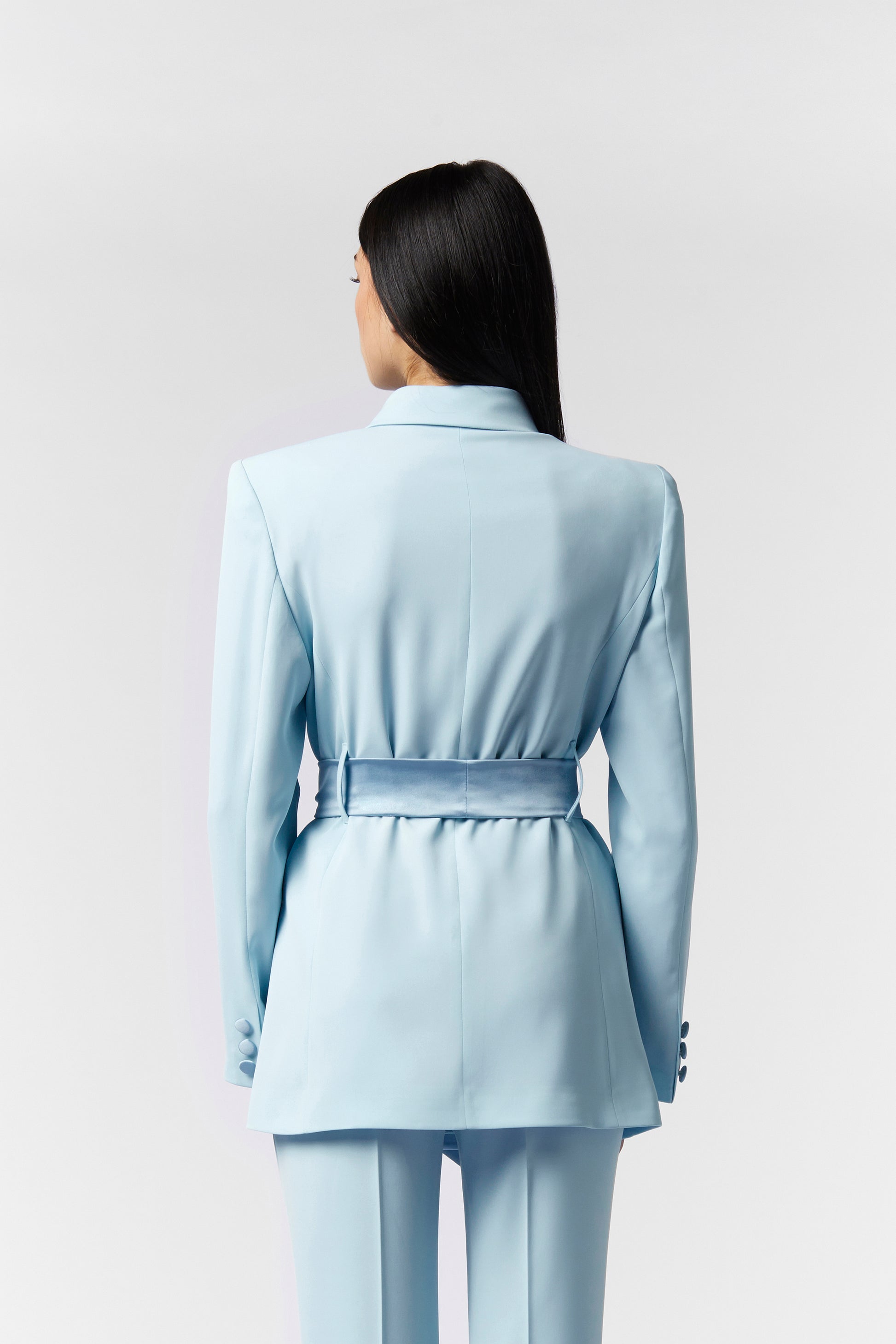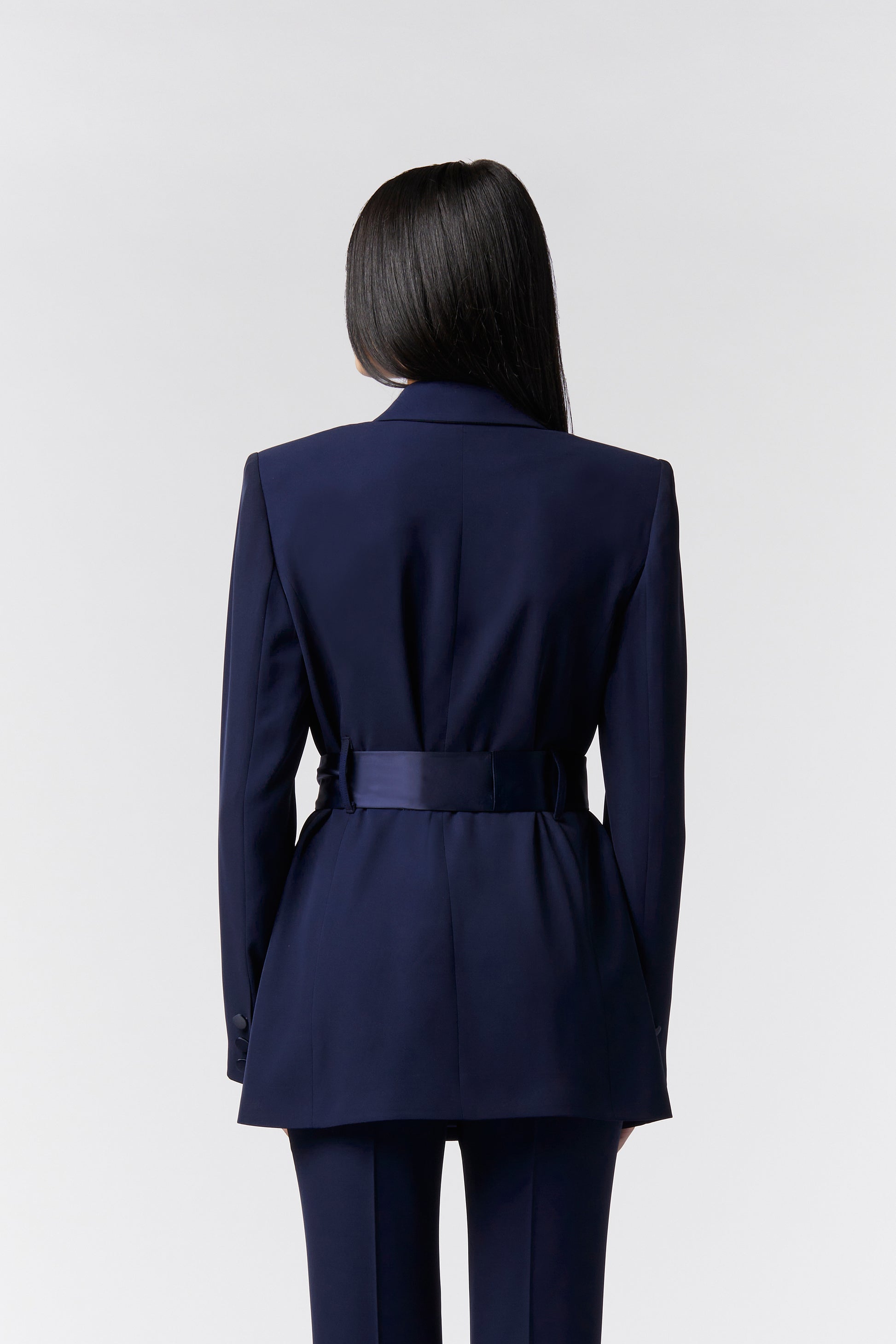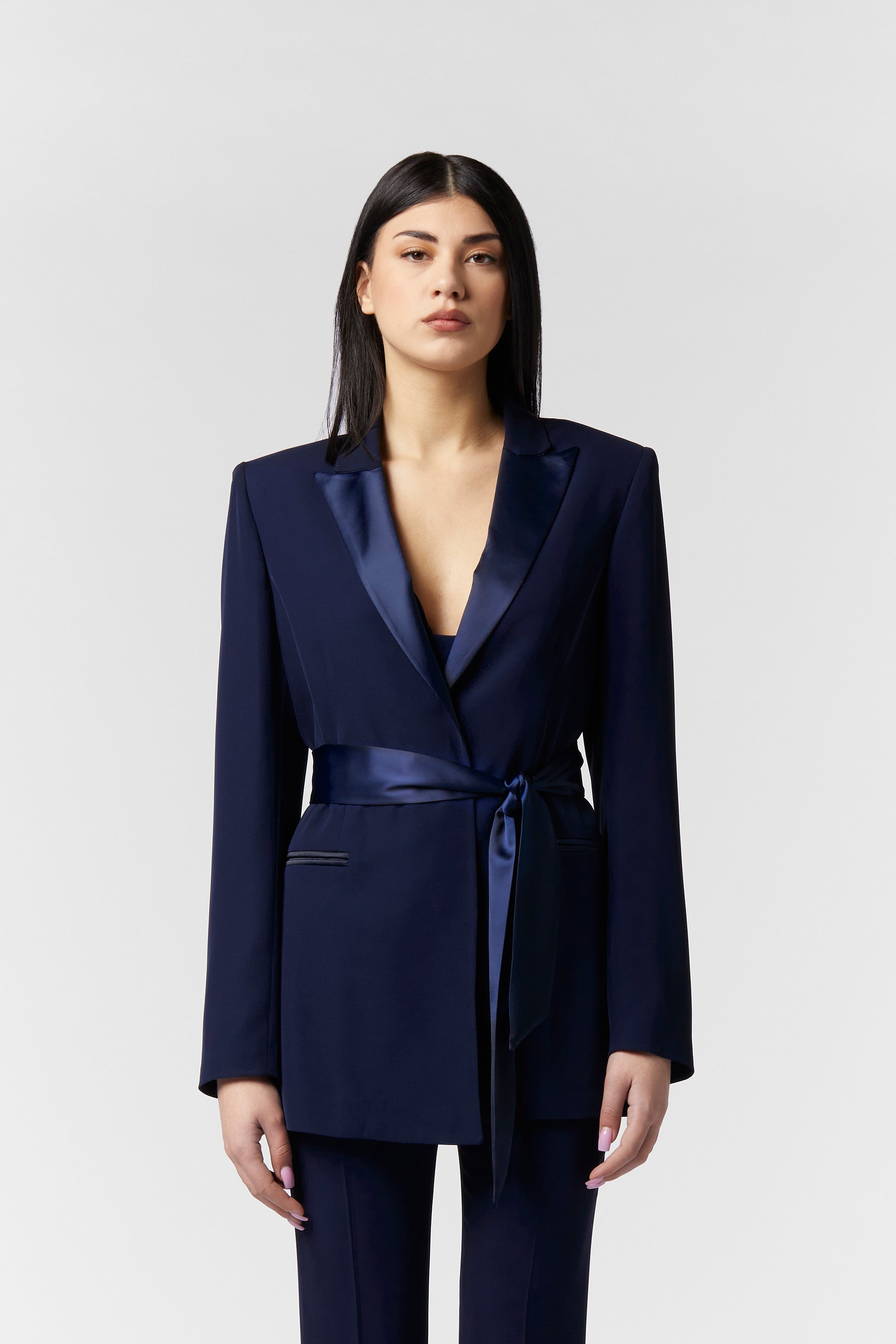 Giacca con cintura in raso in tessuto Kady, dal taglio moderno e femminile. Il punto vita è valorizzato dalla cintura tono su tono in raso, pensata per essere annodata e creare un dettaglio morbido e raffinato.