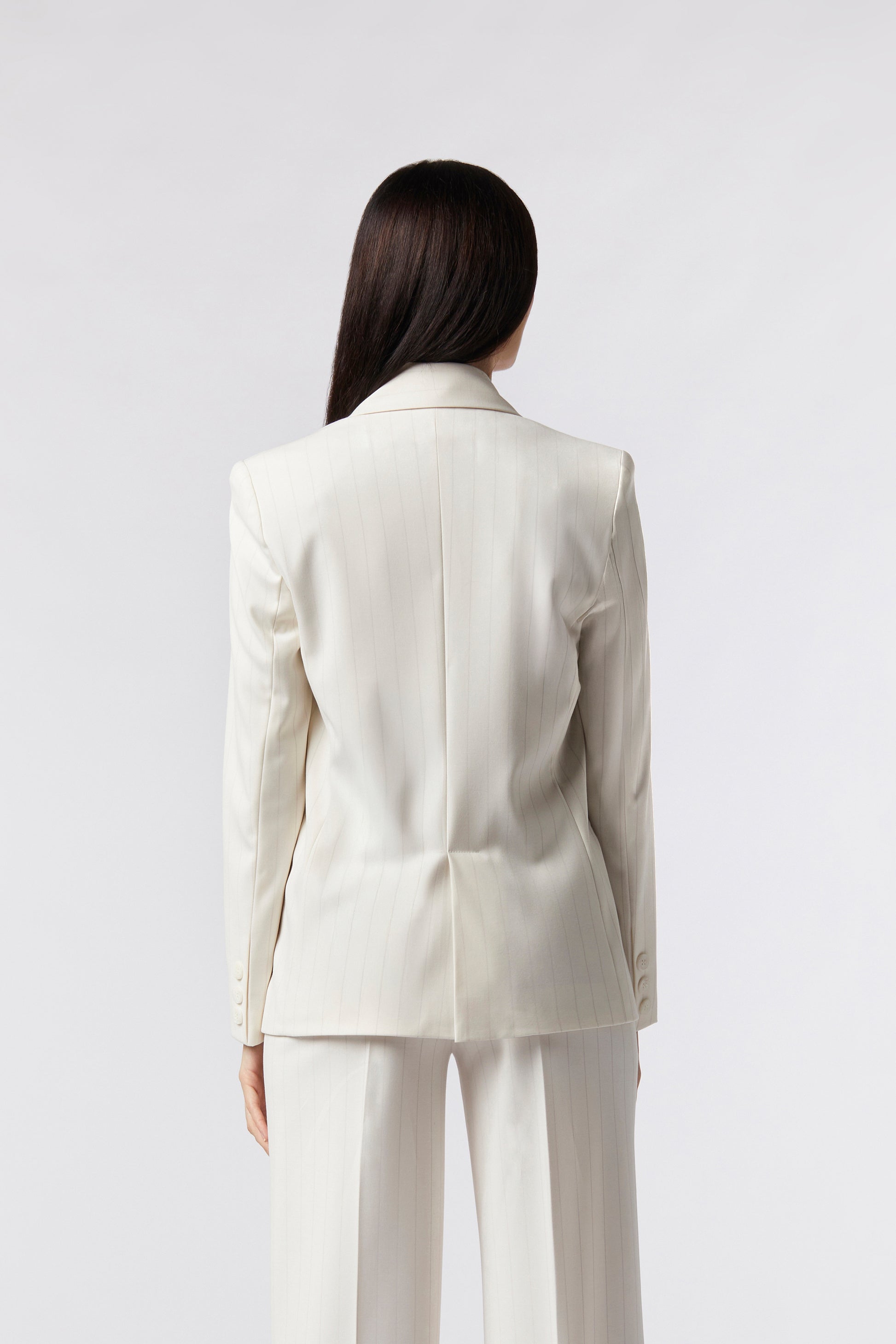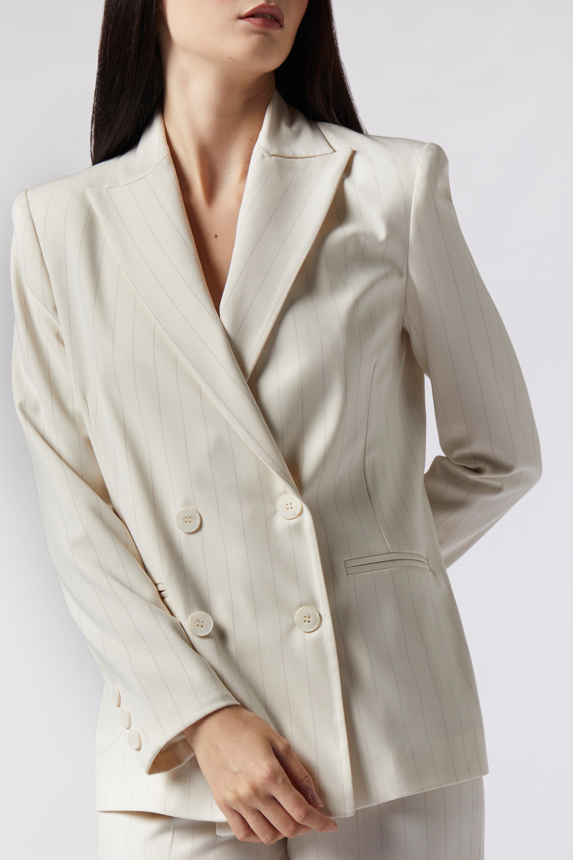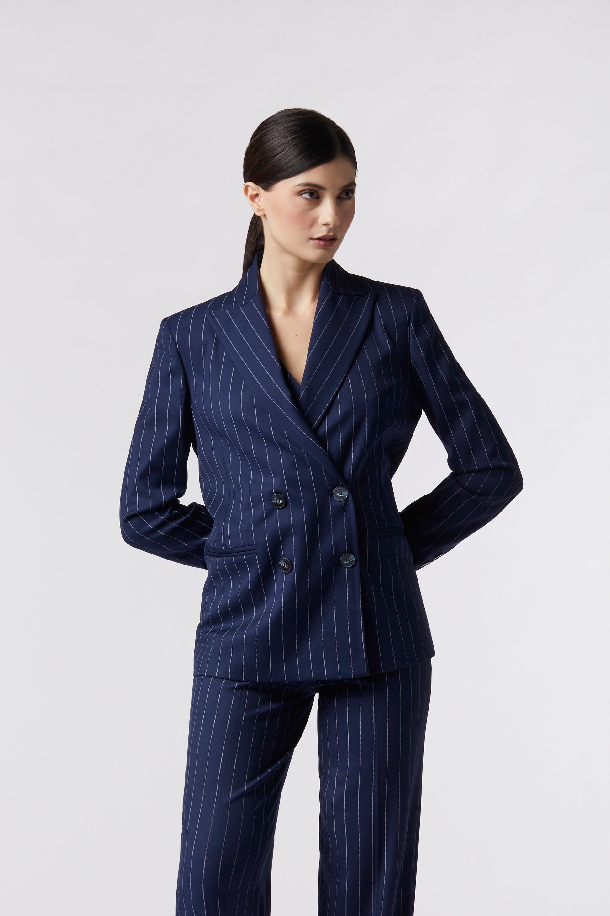 Gallarate è la giacca doppiopetto in gessato che interpreta la sartorialità italiana con equilibrio e carattere. Realizzata in tessuto gessato fine, presenta una linea strutturata ma confortevole che valorizza la figura. I quattro bottoni tono su tono aggiungono un tocco deciso e raffinato al design. Perfetta per creare un tailleur Made in Italy dal gusto contemporaneo, ideale come completo per cerimonia, lavoro o laurea.