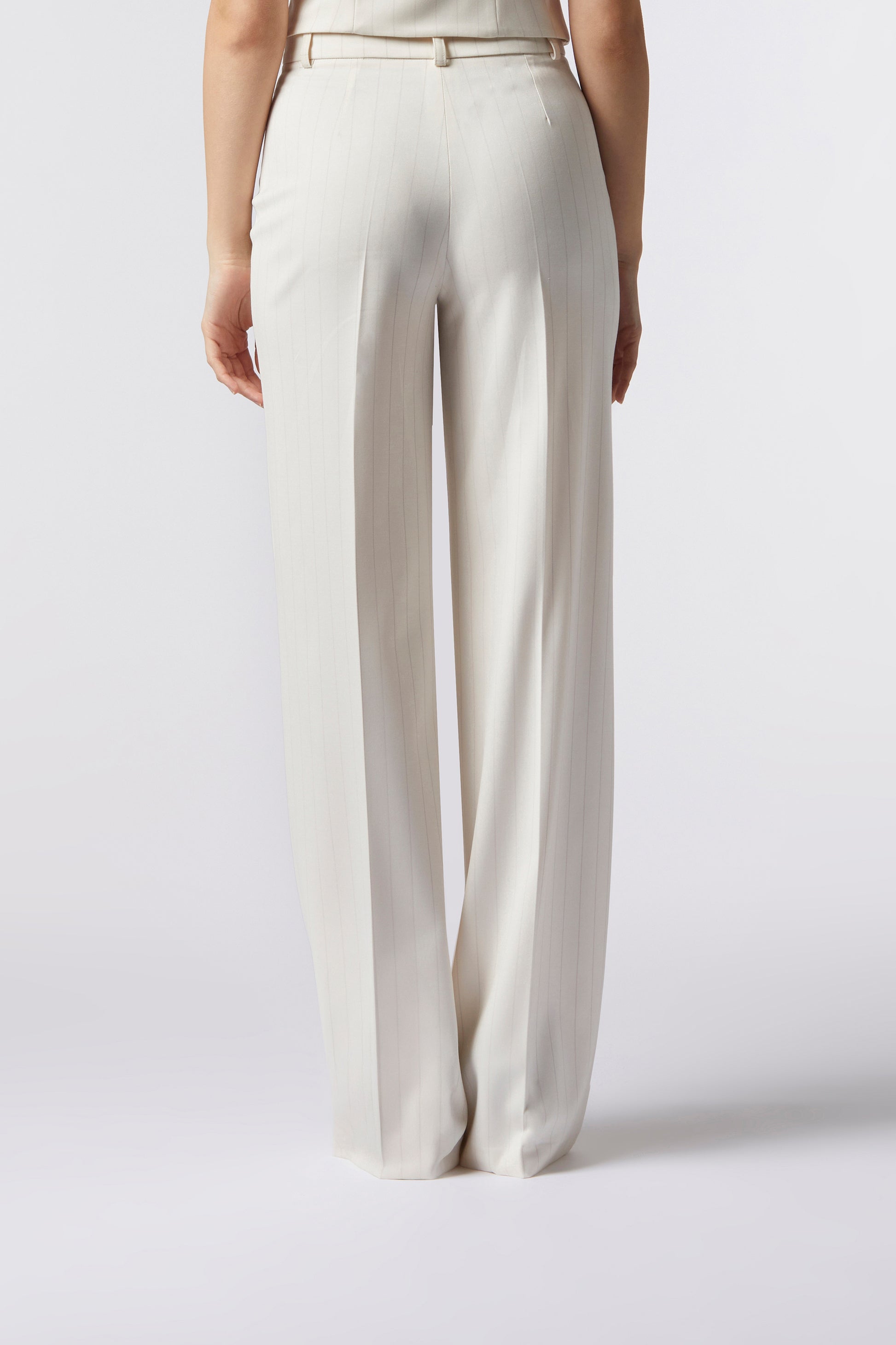 Panama è il pantalone palazzo in gessato che unisce comfort ed eleganza in perfetto equilibrio. Realizzato in tessuto gessato fine, cade con fluidità lungo la gamba valorizzando la figura con una linea ampia e armoniosa. Il taglio sartoriale e la vestibilità impeccabile lo rendono ideale per completare un tailleur Made in Italy raffinato e contemporaneo, perfetto come completo per la laurea, il lavoro o una cerimonia.