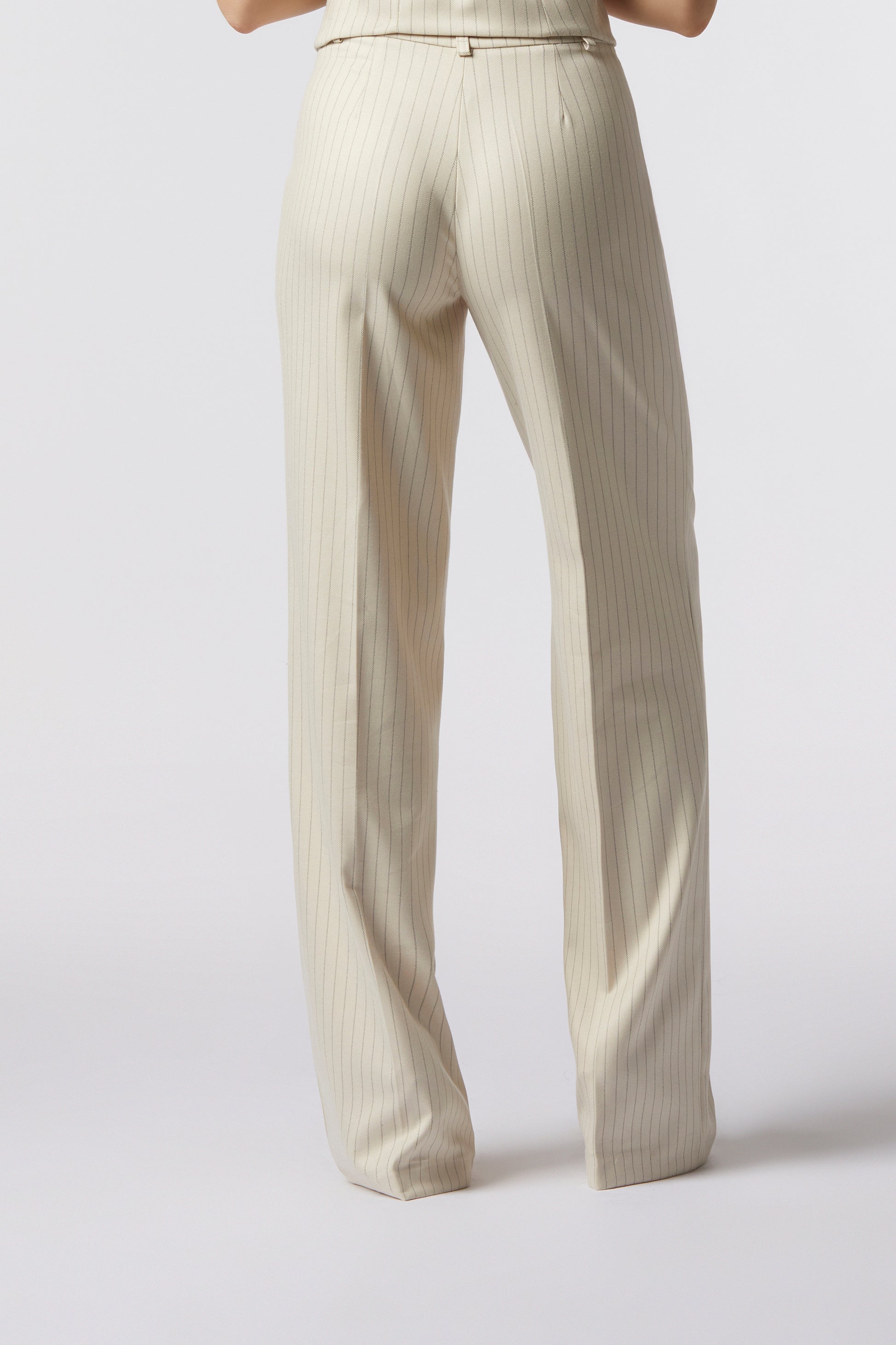 Praga è il pantalone palazzo in gessato lurex, caratterizzato da un’eleganza luminosa e senza tempo. Realizzato in tessuto gessato con sottile riga bronzo, scende morbido lungo la gamba con una linea ampia e fluida che slancia la figura. Il taglio sartoriale e la vestibilità confortevole lo rendono perfetto per completare un tailleur Made in Italy raffinato e contemporaneo, ideale per la laurea, una cerimonia o un evento speciale.