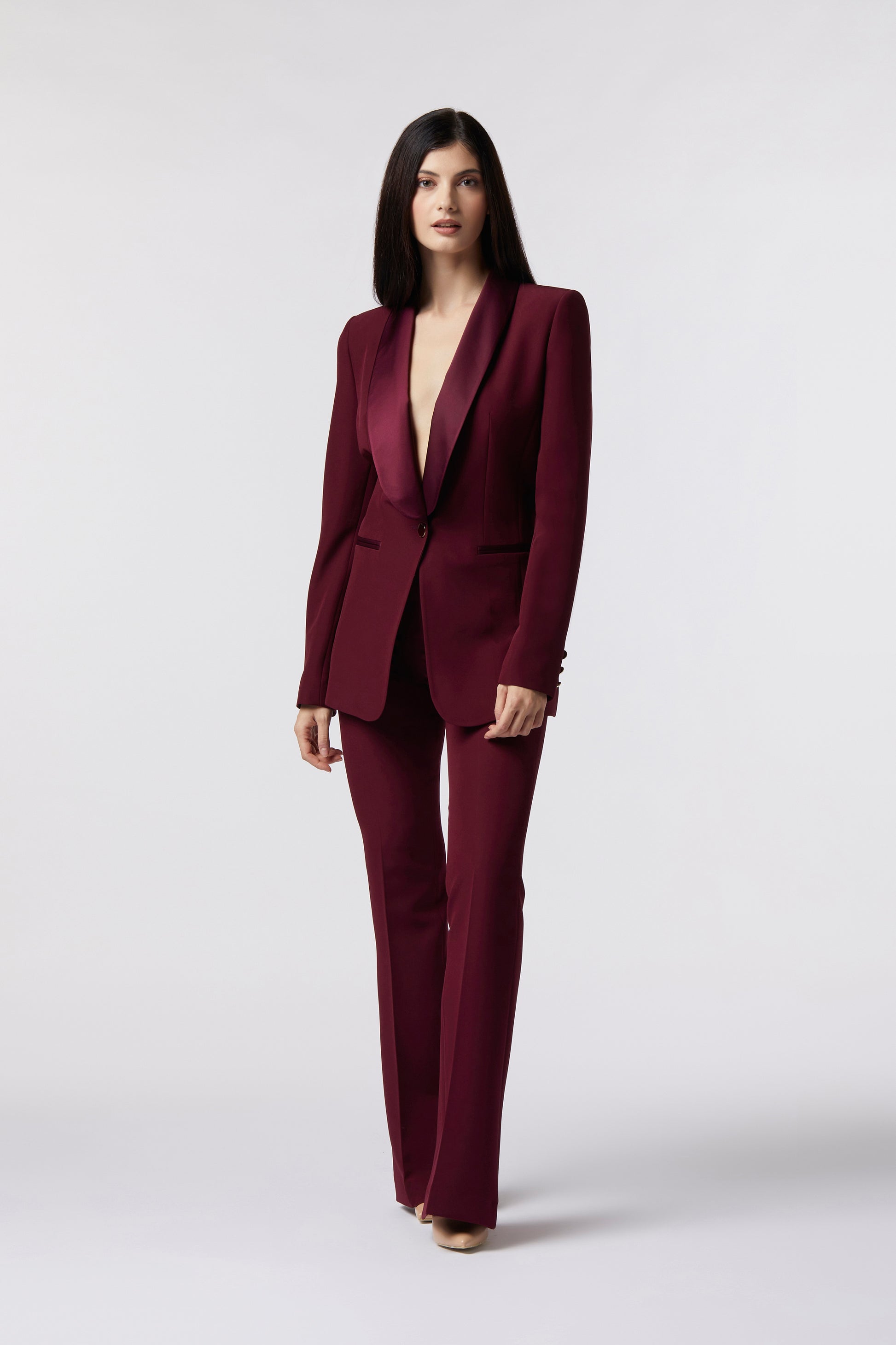 Tailleur Giacca monopetto rever raso e Pantalone a zampa – Tessuto Stretch